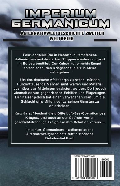 Februar 1943: Die in Nordafrika kämpfenden italienischen und deutschen Truppen werden dringend in Europa benötigt. Der Kaiser hat ohnehin längst entschieden, den Kriegsschauplatz in Afrika aufzugeben.Um das deutsche Afrikakorps zu retten, müssen Hunderttausende Männer samt Waffen und Material quer über das Mittelmeer evakuiert werden. Dort jedoch wimmelt es von gegnerischen Schiffen und Flugzeugen. Der Kaiser entwickelt einen verwegenen Plan, um die Schlacht ums Mittelmeer zu entscheiden.Kurz darauf beginnt die größte Luft-See-Operation des Krieges. Und auch an der Ostfront werfen geschichtsträchtige Ereignisse ihre Schatten voraus ...Imperium Germanicum - actiongeladene Military Science Fiction trifft historische Detailverliebtheit!Klicken Sie auf "Jetzt kaufen", und tauchen Sie sofort mit dem E-Book ein, oder lassen Sie sich das Taschenbuch oder die gebundene Ausgabe bequem nach Hause liefern.