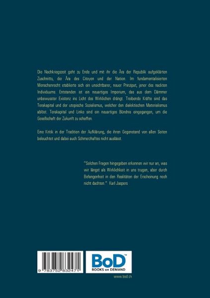 Die Nachkriegszeit geht zu Ende und mit ihr die Ära der Republik aufgeklärten Zuschnitts, die Ära des Citoyen und der Nation. Im fundamentalisierten Menschenrecht etablierte sich ein unsichtbarer, neuer Prinzipat, jener des nackten Individuums. Terakapital und Linke sind ein neuartiges Bündnis eingegangen, um die Gesellschaft der Zukunft zu schaffen.Eine psychologische, geschichtsphilosophische und politische Kritik, die ihren Gegenstand von allen Seiten beleuchtet und dabei auch Schmerzhaftes nicht auslässt.Zweite, leicht überarbeitete Auflage.
