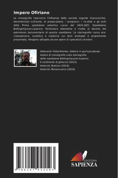 La monografia ripercorre l'influenza delle società segrete (massoniche, decembriste) sull'avvio, la preparazione, i progressi, i risultati e gli esiti della Prima spedizione antartica russa del 1819-1821 (Spedizione Bellingshausen-Lazarev). Particolare attenzione è rivolta al destino del patrimonio documentario di questa spedizione. La storiografia russa pre-rivoluzionaria, sovietica e moderna sui temi analizzati è ampiamente presentata. Vengono utilizzate alcune opere di specialisti stranieri.
