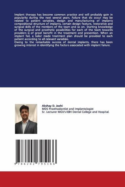 Implant therapy has become common practice and will probably gain in popularity during the next several years. Failure that do occur may be related to patient variables, design and manufacturing of implants compositional structure of implants, certain design feature, restorative and surgical skills of the members of the team and so on. Starting knowledge of the surgical and prosthetic possibilities for each of the team towards providers is of great benefit in the treatment and prevention. When an implant fail, a tailor made treatment plan should be provided to each patient according to all relevant variables. Owing to the remarkable success of dental implants, there has been growing interest in identifying the factors associated with implant failure.