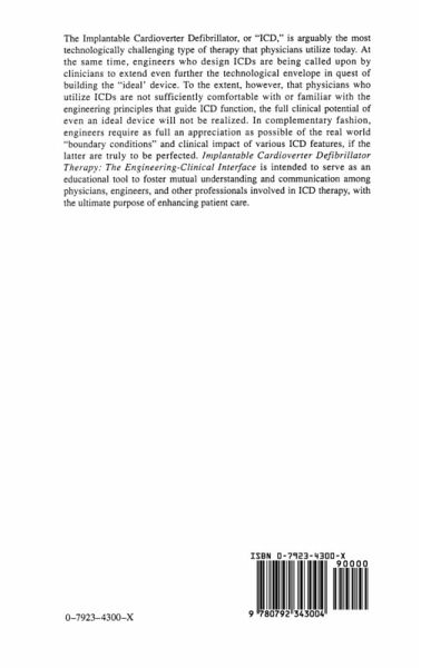 HE IMPLANTABLE CARDIOVERTER DEFIBRILLATOR, or T"lCD," is arguably the most technologically challenging type of therapy that physicians utilize today. At the same time, engineers who design ICDs are being called upon by clinicians to extend even further the technological envelope in quest of building the "ideal" device. To the extent, however, that physicians who utilize ICDs are not sufficiently comfortable with or familiar with the engineering principles that guide ICD function, the full clinical potential of even an ideal device will not be realized. In comple mentary fashion, engineers require as full an appreciation as possi ble of the real world "boundary conditions" and clinical impact of various ICD features, if the latter are truly to be perfected. This book is intended to serve as an educational tool to foster mutual understanding and communication among physicians, engineers, and other professionals involved in ICD therapy, with the ultimate purpose of enhancing patientcare. The highly varied backgrounds of such a diverse audience posed obvious challenges in the preparation of this volume. Given the overwhelmingly greater involvement of clinicians in the day-to day management and follow-up of ICD recipients, we gave high priority to the presentation of oftentimes complex yet relevant engi neering concepts in a manner that could be understandable to most clinicians.