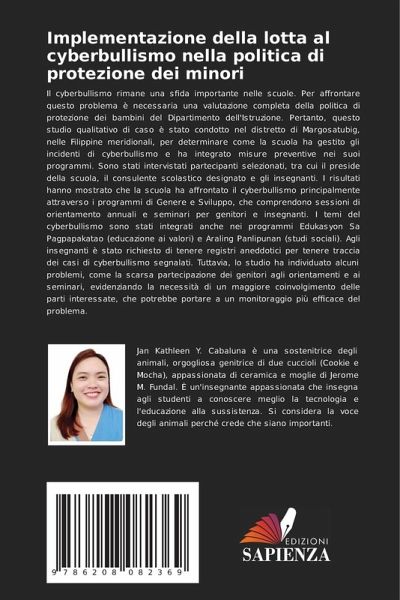 Il cyberbullismo rimane una sfida importante nelle scuole. Per affrontare questo problema è necessaria una valutazione completa della politica di protezione dei bambini del Dipartimento dell'Istruzione. Pertanto, questo studio qualitativo di caso è stato condotto nel distretto di Margosatubig, nelle Filippine meridionali, per determinare come la scuola ha gestito gli incidenti di cyberbullismo e ha integrato misure preventive nei suoi programmi. Sono stati intervistati partecipanti selezionati, tra cui il preside della scuola, il consulente scolastico designato e gli insegnanti. I risultati hanno mostrato che la scuola ha affrontato il cyberbullismo principalmente attraverso i programmi di Genere e Sviluppo, che comprendono sessioni di orientamento annuali e seminari per genitori e insegnanti. I temi del cyberbullismo sono stati integrati anche nei programmi Edukasyon Sa Pagpapakatao (educazione ai valori) e Araling Panlipunan (studi sociali). Agli insegnanti è stato richiesto di tenere registri aneddotici per tenere traccia dei casi di cyberbullismo segnalati. Tuttavia, lo studio ha individuato alcuni problemi, come la scarsa partecipazione dei genitori agli orientamenti e ai seminari, evidenziando la necessità di un maggiore coinvolgimento delle parti interessate, che potrebbe portare a un monitoraggio più efficace del problema.