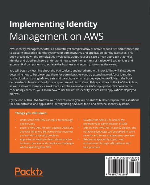 Understand the IAM toolsets, capabilities, and paradigms of the AWS platform and learn how to apply practical identity use cases to AWS at the administrative and application level Key Features:Learn administrative lifecycle management and authorization Extend workforce identity to AWS for applications deployed to Amazon Web Services (AWS) Understand how to use native AWS IAM capabilities with apps deployed to AWS Book Description: AWS identity management offers a powerful yet complex array of native capabilities and connections to existing enterprise identity systems for administrative and application identity use cases. This book breaks down the complexities involved by adopting a use-case-driven approach that helps identity and cloud engineers understand how to use the right mix of native AWS capabilities and external IAM components to achieve the business and security outcomes they want. You will begin by learning about the IAM toolsets and paradigms within AWS. This will allow you to determine how to best leverage them for administrative control, extending workforce identities to the cloud, and using IAM toolsets and paradigms on an app deployed on AWS. Next, the book demonstrates how to extend your on-premise administrative IAM capabilities to the AWS backplane, as well as how to make your workforce identities available for AWS-deployed applications. In the concluding chapters, you'll learn how to use the native identity services with applications deployed on AWS. By the end of this IAM Amazon Web Services book, you will be able to build enterprise-class solutions for administrative and application identity using AWS IAM tools and external identity systems. What You Will Learn:Understand AWS IAM concepts, terminology, and services Explore AWS IAM, Amazon Cognito, AWS SSO, and AWS Directory Service to solve customer and workforce identity problems Apply the concepts you learn about to solve business, process, and compliance challenges when expanding into AWS Navigate the AWS CLI to unlock the programmatic administration of AWS Explore how AWS IAM, its policy objects, and notational language can be applied to solve security and access management use cases Relate concepts easily to your own environment through IAM patterns and best practices Who this book is for: Identity engineers and administrators, cloud administrators, security architects, or anyone who wants to explore and manage IAM solutions in AWS will find this book useful. Basic knowledge of AWS cloud infrastructure and services is required to understand the concepts covered in the book more effectively.