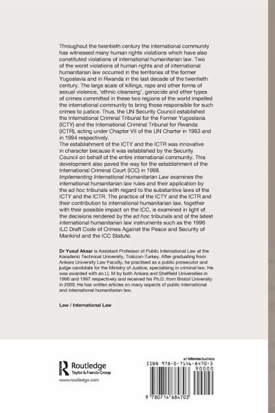 Implementing International Humanitarian Law examines the international humanitarian law rules and their application by the ad hoc tribunals with regard to the substantive laws of the International Criminal Tribunal for the Former Yugoslavia (ICTY) and the International Criminal Tribunal Rwanda (ICTR). The practice of the ICTY and the ICTR and their contribution to international humanitarian law, together with their possible impact on the International Criminal Court, is examined in light of the decisions rendered by the ad hoc tribunals and of the latest international humanitarian law instruments such as the 1996 ILC Draft Code of Crimes Against the Peace and Security of Mankind and the ICC Statute.