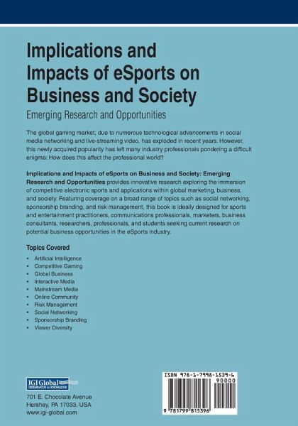"This book explores the implications of eSports and its future. It also examines topics ranging from the eSports marketplace to the direct and indirect impact on business and society"--