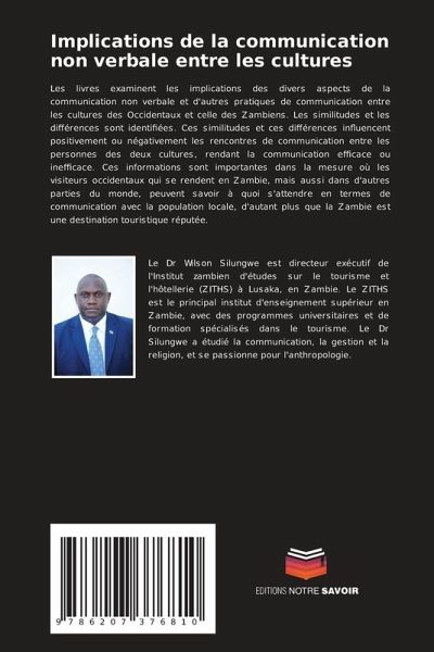 Les livres examinent les implications des divers aspects de la communication non verbale et d'autres pratiques de communication entre les cultures des Occidentaux et celle des Zambiens. Les similitudes et les différences sont identifiées. Ces similitudes et ces différences influencent positivement ou négativement les rencontres de communication entre les personnes des deux cultures, rendant la communication efficace ou inefficace. Ces informations sont importantes dans la mesure où les visiteurs occidentaux qui se rendent en Zambie, mais aussi dans d'autres parties du monde, peuvent savoir à quoi s'attendre en termes de communication avec la population locale, d'autant plus que la Zambie est une destination touristique réputée.