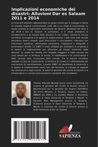 Le ricorrenti alluvioni rappresentano un grave rischio per lo sviluppo e hanno un impatto negativo sull'economia, sulle vite e sui mezzi di sussistenza. Lo studio analizza le implicazioni economiche dei disastri alluvionali del 2011 e del 2014 a Dar es Salaam. In particolare, si è voluto analizzare le caratteristiche e gli impatti delle alluvioni in vari settori, nonché le misure correttive, le esigenze e le opzioni di miglioramento. I dati sono stati raccolti attraverso diversi metodi, quali discussioni e consultazioni, interviste con informatori qualificati, informazioni secondarie, mappature e fotografie e osservazioni dirette. La SWOT è stata utilizzata per analizzare le esigenze e le opzioni di miglioramento per affrontare gli impatti economici delle alluvioni. Lo studio ha rilevato che l'impatto maggiore è stato causato dai costi elevati per la fornitura di servizi, la riabilitazione e la ricostruzione e dalla carenza nella riscossione delle entrate. Tra le misure correttive adottate vi sono la ricostruzione, la fornitura di servizi e il rafforzamento dei meccanismi di coordinamento. L'analisi SWOT ha identificato le necessità e le opzioni di miglioramento come l'uso del territorio, lo sviluppo di capacità nel commercio e negli scambi, le azioni di gestione del rischio di disastri e le infrastrutture e i servizi socio-economici resistenti alle inondazioni.