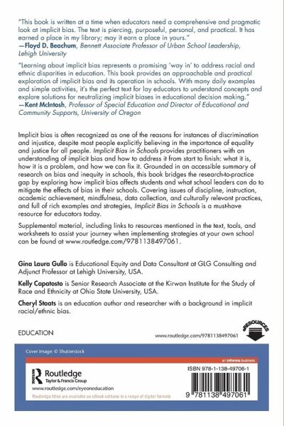 Implicit bias is often recognized as one of the reasons for instances of discrimination and injustice, despite most people explicitly believing in the importance of equality and justice for all people. Implicit Bias in Schools provides practitioners with an understanding of implicit bias and how to address it from start to finish: what it is, how it is a problem, and how we can fix it. Grounded in an accessible summary of research on bias and inequity in schools, this book bridges the research-to-practice gap by exploring how implicit bias affects students and what school leaders can do to mitigate the effects of bias in their schools. Covering issues of discipline, instruction, academic achievement, mindfulness, data collection, and culturally relevant practices, and full of rich examples and strategies, Implicit Bias in Schools is a must-have resource for educators today.