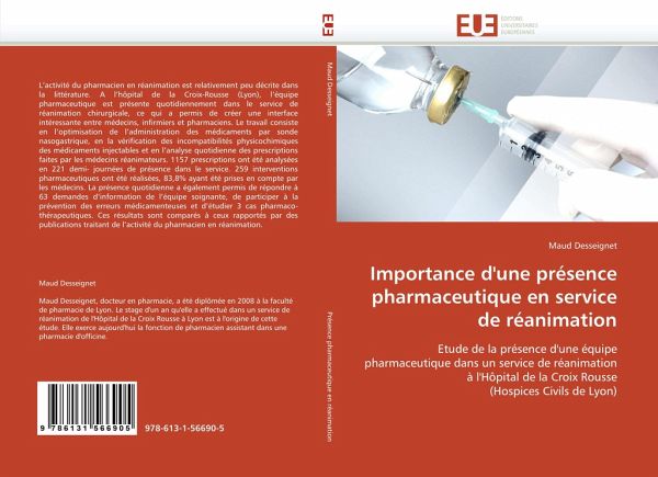 L'activité du pharmacien en réanimation est relativement peu décrite dans la littérature. A l'hôpital de la Croix-Rousse (Lyon), l'équipe pharmaceutique est présente quotidiennement dans le service de réanimation chirurgicale, ce qui a permis de créer une interface intéressante entre médecins, infirmiers et pharmaciens. Le travail consiste en l'optimisation de l'administration des médicaments par sonde nasogastrique, en la vérification des incompatibilités physicochimiques des médicaments injectables et en l'analyse quotidienne des prescriptions faites par les médecins réanimateurs. 1157 prescriptions ont été analysées en 221 demi- journées de présence dans le service. 259 interventions pharmaceutiques ont été réalisées, 83,8% ayant été prises en compte par les médecins. La présence quotidienne a également permis de répondre à 63 demandes d'information de l'équipe soignante, de participer à la prévention des erreurs médicamenteuses et d'étudier 3 cas pharmaco- thérapeutiques. Ces résultats sont comparés à ceux rapportés par des publications traitant de l'activité du pharmacien en réanimation.
