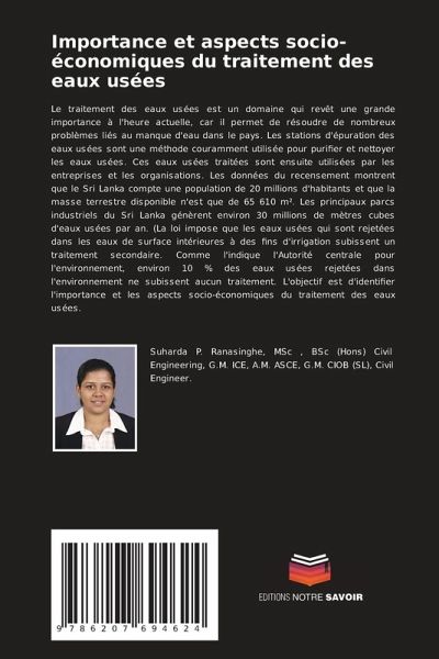 Le traitement des eaux usées est un domaine qui revêt une grande importance à l'heure actuelle, car il permet de résoudre de nombreux problèmes liés au manque d'eau dans le pays. Les stations d'épuration des eaux usées sont une méthode couramment utilisée pour purifier et nettoyer les eaux usées. Ces eaux usées traitées sont ensuite utilisées par les entreprises et les organisations. Les données du recensement montrent que le Sri Lanka compte une population de 20 millions d'habitants et que la masse terrestre disponible n'est que de 65 610 m². Les principaux parcs industriels du Sri Lanka génèrent environ 30 millions de mètres cubes d'eaux usées par an. (La loi impose que les eaux usées qui sont rejetées dans les eaux de surface intérieures à des fins d'irrigation subissent un traitement secondaire. Comme l'indique l'Autorité centrale pour l'environnement, environ 10 % des eaux usées rejetées dans l'environnement ne subissent aucun traitement. L'objectif est d'identifier l'importance et les aspects socio-économiques du traitement des eaux usées.