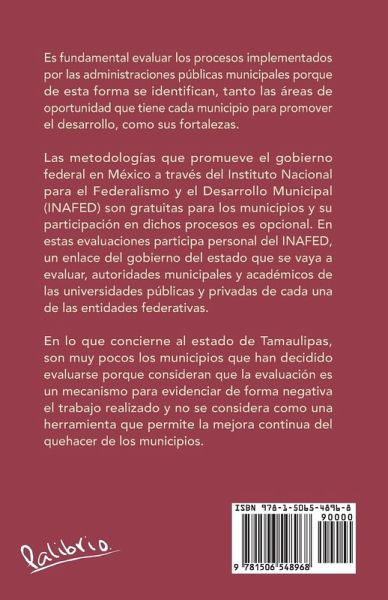 Es fundamental evaluar los procesos implementados por las administraciones públicas municipales porque de esta forma se identifican, tanto las áreas de oportunidad que tiene cada municipio para promover el desarrollo, como sus fortalezas. Las metodologías que promueve el gobierno federal en México a través del Instituto Nacional para el Federalismo y el Desarrollo Municipal (INAFED) son gratuitas para los municipios y su participación en dichos procesos es opcional. En estas evaluaciones participa personal del INAFED, un enlace del gobierno del estado que se vaya a evaluar, autoridades municipales y académicos de las universidades públicas y privadas de cada una de las entidades federativas. En lo que concierne al estado de Tamaulipas, son muy pocos los municipios que han decidido evaluarse porque consideran que la evaluación es un mecanismo para evidenciar de forma negativa el trabajo realizado y no se considera como una herramienta que permite la mejora continua del quehacer de los municipios.