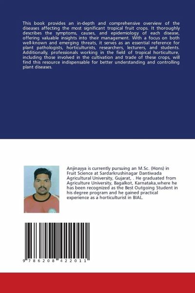 This book provides an in-depth and comprehensive overview of the diseases affecting the most significant tropical fruit crops. It thoroughly describes the symptoms, causes, and epidemiology of each disease, offering valuable insights into their management. With a focus on both well-known and emerging threats, it serves as an essential reference for plant pathologists, horticulturists, researchers, lecturers, and students. Additionally, professionals working in the field of tropical horticulture, including those involved in the cultivation and trade of these crops, will find this resource indispensable for better understanding and controlling plant diseases.