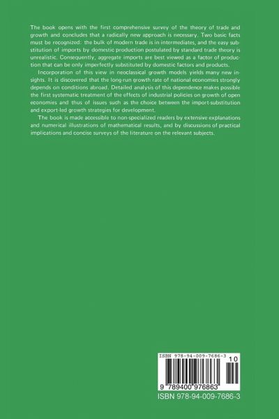 One. Introduction.- 1.1. Approach.- 1.2. Plan of the Book and Results.- Two. The Long-Run Growth Rate in Alternative Theories of Trade and Growth: A Survey of the Literature.- 2.1. The Two-Sector Neoclassical Theory: the Basic Model.- 2.2. Extensions and Variations of the Basic Neoclassical Model.- 2.3. Two-Sector Growth with Complementarity in Production.- 2.4. Growth with Indispensable Imports.- 2.5. An Alternative Theory? The Neo-Ricardian Approach.- Three, Imports as an Indispensable Factor of Production.- 3.1. Imperfect Substitutability of Imports.- 3.2. Imports as an Input.- 3.3. The Production Function.- 3.4. Import Demand.- 3.5. Defining a Corresponding Autarkic Economy.- Appendix 3.1. Tables 3.1 and 3.2, Methods and Sources.- Appendix 3.2. Derivatives and Allen Partial Elasticities of Substitution of a Separable Function.- Appendix 3.3. The Transitional Production Function.- Four. Economic Growth in Economies of Moderate Size: The Case of Free Trade and Separability of Imports and Domestic Factors..- 4.1. Basic Relations and Assumptions.- 4.2. Direction of the Evolution of the Capital-Labour Ratio.- 4.3. A Steady-Growth Theorem.- 4.4. The Influence of International Circumstances and Technology on the Long-Run National Growth Rate.- 4.5. Practical Interpretation and Policy Implications.- Appendix 4.1. Steady Growth under Unfavourable Conditions of Trade and Stagnating Technical Progress.- Appendix 4.2. Parameter Variations and the Steady-Growth Rate.- Five. Economies of Moderate Size: Consequences of Tariffs and Non-Separability of Imports and Domestic Factors.- 5.1. Non-Separability of Imports and Domestic Factors.- 5.2. Effects of Import Duties.- 5.3. Non-Separability and Import Duties.- Appendix 5.1. Optimum Duties and Steady Growth of Cobb-Douglas Economies.- Six. Transmission and Generation of Growth by North-South Trade.- 6.1. Equilibrium Trade.- 6.2. Direction of the Evolution of the Capital-Labour Ratios.- 6.3. A Steady-Growth Theorem.- 6.4. Determinants of the North's and South's Long-Run Growth Rates.- 6.5. Implications.- Appendix 6.1. Parameter Variations and the Steady-Growth Rates.- Appendix 6.2. Sources of Tables 6.7, 6.8 and 6.9.- Seven. North-South Aid and the North S Income.- 7.1. The Transfer Problem.- 7.2. North-South Aid: a Tertiary Blessing for the North.- 7.3. The Trajectory of North-South Aid Maximizing the North's Consumption.- Appendix 7.1. The Transfer Effect and the Capital Stocks.- Eight. Stability of The Goods Market and the Balance of Trade When Imports are Indispensable Inputs.- 8.1. Stability of the Goods Market with Balanced Trade.- 8.2. Stability of the Balance of Trade.- Notes.- References.- List of Main Symbols.- Author Index.