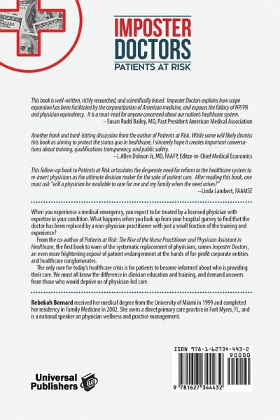 When you experience a medical emergency, you expect to be treated by a licensed physician with expertise in your condition. What happens when you look up from your hospital gurney to find that the doctor has been replaced by a non-physician practitioner with just a small fraction of the training and experience? From the co-author of Patients at Risk: The Rise of the Nurse Practitioner and Physician Assistant in Healthcare, the first book to warn of the systematic replacement of physicians, comes Imposter Doctors, an even more frightening exposé of patient endangerment at the hands of for-profit corporate entities and healthcare conglomerates. In the two years since Patients at Risk debuted, the employment of non-physician practitioners has continued to skyrocket. While advocates insist that nurse practitioners and physician assistants are 'just as good' as physicians, they are wrong. Despite over fifty years of scientific analysis, there is no conclusive evidence that non-physicians can provide safe and effective medical care without physician oversight. In fact, recent studies have shown the opposite: that the replacement of physicians puts patients at risk. The only cure for today's healthcare crisis is for patients to become informed about who is providing their care. We must all know the difference in clinician education and training, and demand answers from those who would deprive us of physician-led care.