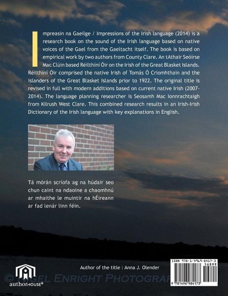 Impreasin na Gaeilge / Impressions of the Irish language (2014) is a research book on the sound of the Irish language based on native voices of the Gael from the Gaeltacht itself. The book is based on empirical work by two authors from County Clare. An tAthair Seóirse Mac Clúin based Réilthíní Óir on the Irish of the Great Blasket Islands. Réilthíní Óir comprised the native Irish of Tomás Ó Criomhthain and the islanders of the Great Blasket Islands prior to 1922. The original title is revised in full with modern additions based on current native Irish (2007-2014). The language planning…mehr