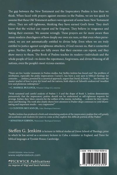 The gap between the New Testament and the Imprecatory Psalms is less than we think. When faced with prayers against enemies in the Psalms, we are too quick to assume that these Old Testament authors were ignorant of some basic New Testament ethics. They are self-righteous, thinking they have earned God's favor. They don't know that the wicked can repent and be forgiven. They believe in vengeance and hating their enemies. We assume wrongly. These prayers are far more aware than many modern churchgoers of how deeply our own sin runs, so that even when persecuted, we are not automatically entitled to divine help. Even when we are truly entitled to justice against unrighteous attackers, if God rescues us, that is unmerited grace. Further, the psalms are fully aware that their enemies can repent, and they show mercy to them. The Book of Psalms teaches its readers--individuals and the whole people of God--to desire the repentance, forgiveness, and divine blessing of all nations, even the people's most vicious enemies.