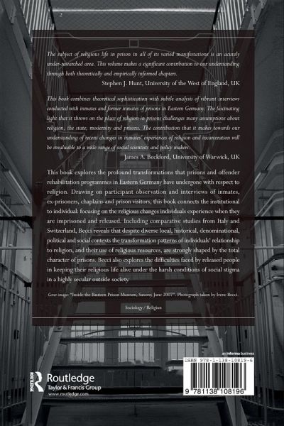 This book explores the profound transformations that prisons and offender rehabilitation programmes in Eastern Germany have undergone with respect to religion. Drawing on participant observation and interviews of inmates, ex-prisoners, chaplains and prison visitors, this book connects the institutional to individual: focusing on the religious changes individuals experience when they are imprisoned and released. Becci also explores the difficulties faced by released people in keeping their religious life alive under the harsh conditions of social stigma in a highly secular outside society.