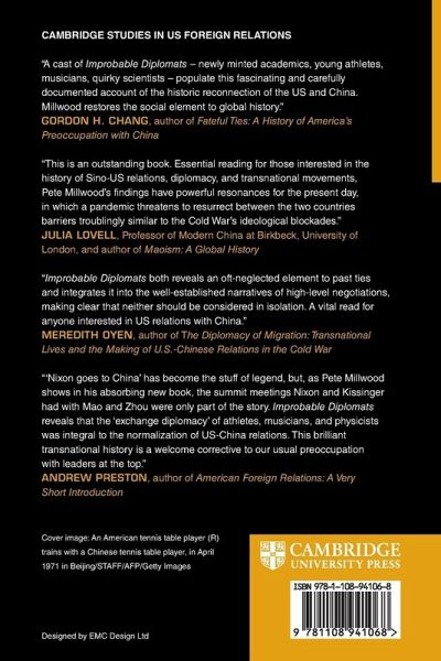 Improbable Diplomats reveals the critical role of Chinese and American athletes, scientists, and artists in rebuilding US-China relations in the 1970s. Examining an overlooked aspect of ties between the two societies, this revisionist account of US-China rapprochement will interest historians and students of Chinese and US foreign relations.