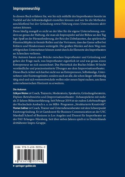 In diesem Buch erfahren Sie, wie Sie sich mithilfe des Improtheaters bereits im Vorfeld auf die Selbstständigkeit einstellen können und wie Sie die Methoden anschließend bei der Gründung sowie Führung eines Unternehmens aktiv nutzen können.
