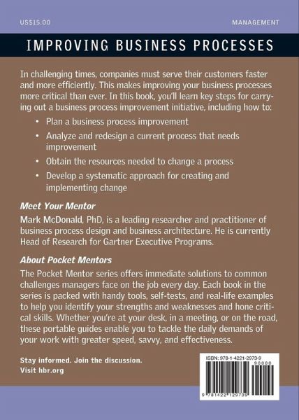 About Pocket Mentors The Pocket Mentor series offers immediate solutions to the challenges managers face on the job every day. Each book in the series is packed with handy tools, self-tests, and real life examples to help you identify strengths and weaknesses and hone critical skills. Whether you're at your desk, in a meeting, or on the road, these portable guides enable you to tackle the daily demands of your work with greater speed, savvy, and effectiveness. Meet Your Mentor Mark McDonald, PhD, is a leading researcher and practitioner of business process design and business architecture. He is currently Head of Research for Gartner Executive Programs.
