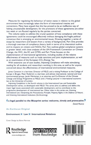 Measures for regulating the behaviour of nation states in relation to the global environment have increasingly taken the form of international treaties and conventions. Many have argued that this has proved to be an ineffective way of halting unsustainable development, for the provisions of these agreements are either too weak or are flouted regularly by the parties concerned. This volume seeks to address the crucial question of how compliance with these agreements could be encouraged effectively without damaging the fragile political consensus that is emerging on environmental issues. With extensive use of case studies, Improving Compliance will make stimulating reading for all students and researchers working in this area, as well as for anyone concerned about the effectiveness of international environmental measures.