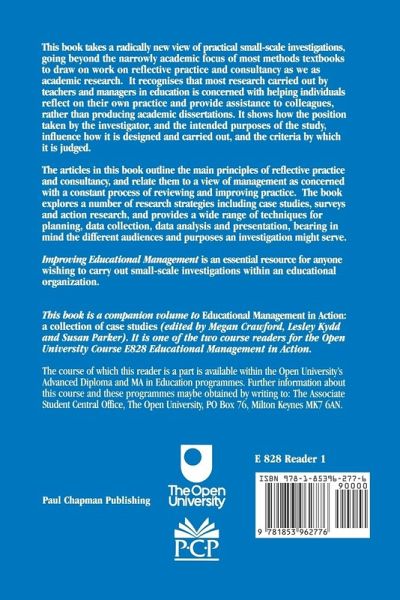 `This reader is certainly worth a place in any consultant's start-up kit, and offers useful refreshment for all but the most expert' - Education Systems The articles in this book outline the main principles of reflective practice and consultancy, and relate them to a view of management as concerned with a constant process of reviewing and improving practice. The book explores a number of research strategies including case studies, surveys and action research, and provides a wide range of techniques for planning, data collection, data analysis and presentation, bearing in mind the different audiences and purposes an investigation might serve. This book is the companion volume to Educational Management in Action: a collection of case studies (edited by Megan Crawford, Lesley Kydd and Susan Parker). It is one of the two course readers for The Open University Course E828 Educational Management in Action.
