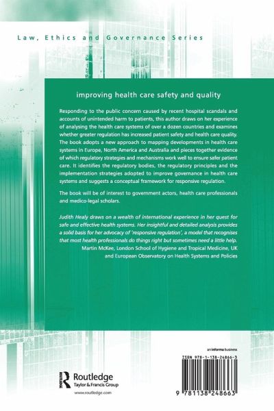 Responding to the public concern caused by recent hospital scandals and accounts of unintended harm to patients, this author draws on her experience of analysing the health care systems of over a dozen countries and examines whether greater regulation has increased patient safety and health care quality. The book adopts a new approach to mapping developments in health care systems in Europe, North America and Australia and pieces together evidence of which regulatory strategies and mechanisms work well to ensure safer patient care. It identifies the regulatory bodies, the regulatory principles and the implementation strategies adopted to improve governance in health care systems and suggests a conceptual framework for responsive regulation. The book will be of interest to government actors, health care professionals and medico-legal scholars.