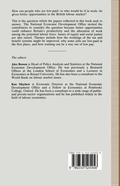 This collection of papers considers how people who are low paid can be given better opportunities in the British labour market. Topics considered include how the workings of the tax and benefits systems might be improved, and why some jobs are low paid in the first place.