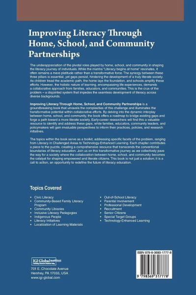The underappreciation of the pivotal roles played by home, school, and community in shaping the literacy journey of individuals. While the mantra "Literacy begins at home" resonates, it often remains a mere platitude rather than a transformative force. The synergy between these three pillars is essential, yet gaps persist, hindering the development of a truly literate society. As children tread the academic path, the home lays the foundation, and schools amplify these efforts. However, the holistic nature of learning, encompassing life experiences, demands a collaborative approach from families, educators, and communities. This is the crux of the problem - a disjointed system that impedes the seamless development of literacy across diverse backgrounds. Improving Literacy Through Home, School, and Community Partnerships is a groundbreaking book that unravels the complexities of this challenge and illuminates the transformative potential within collaborative efforts. By delving into the dynamic interplay between home, school, and community, the book offers a roadmap to bridge existing gaps and forge a path toward a more literate society. Early-career researchers will find this a valuable resource to identify and address these gaps, while families, educators, community leaders, and policymakers will gain invaluable perspectives to inform their practices, policies, and research initiatives.