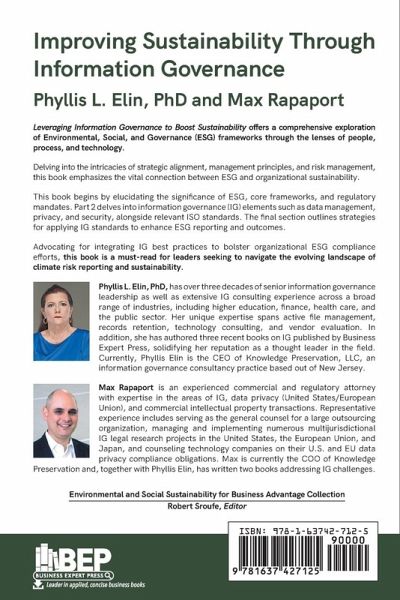 Leveraging Information Governance to Boost Sustainability offers a comprehensive exploration of Environmental, Social, and Governance (ESG) frameworks through the lenses of people, process, and technology. Delving into the intricacies of strategic alignment, management principles, and risk management, the book emphasizes the vital connection between ESG and organizational sustainability. This book begins by elucidating the significance of ESG, core frameworks, and regulatory mandates. Part two delves into Information Governance (IG) elements such as data management, privacy, and security, alongside relevant ISO standards. The final section outlines strategies for applying IG standards to enhance ESG reporting and outcomes. Advocating for integrating IG best practices to bolster organizational ESG compliance efforts, this book is a must-read for leaders seeking to navigate the evolving landscape of climate risk reporting and sustainability.