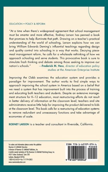 The author's expertise as a classroom teacher and intricate knowledge of W. Edward Deming's continuous improvement model make this book valuable reading... Recommended. CHOICE, July 2010 At a time when there's widespread agreement that school management must be smarter and more effective, Rodney Larson has penned a book that promises to help to illuminate that path. Drawing on a teacher's practical understanding of the world of schooling, Larson explains how we can bring William Edwards Deming's influential teachings regarding design and quality control into schooling in a way that works. Decrying piecemeal management reform, he calls for a wholesale rethinking of how we approach schooling and serve students. This provocative book is sure to stimulate fresh thinking and debate among those seeking to improve our nation's schools. -- Frederick M. Hess, director of education policy studies at the American Enterprise Institute