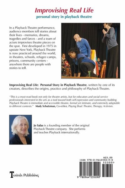 In a Playback Theatre performance, audience members tell true stories about their lives and a team of actors improvises theatre pieces on the spot. First developed in 1975 in upstate New York, Playback Theatre is now practiced around the world, in theatres, schools, refugee camps, prisons, governmental departments—wherever people have stories to tell. Improvising Real Life: Personal Story in Playback Theatre, written by Playback’s cofounder Jo Salas, is the basic text used by new and seasoned Playback practitioners, trainers, and university teachers. The photo-illustrated book describes the origins, practice and philosophy of Playback Theatre. Entertaining and thoughtful, Improvising Real Life is illustrated with dozens of real-life stories told in performances and workshops. It has been translated into German, Japanese, Spanish, Chinese (Traditional and Simplified), Portuguese, Russian, Hebrew, and Korean (forthcoming). The 20th Anniversary edition includes a foreword by Roberto Gutiérrez Varea from Theatre Without Borders and co-founder of the Performing Arts and Social Justice Program at the University of San Francisco, as well as an afterword by the author with comments on Playback's current development.