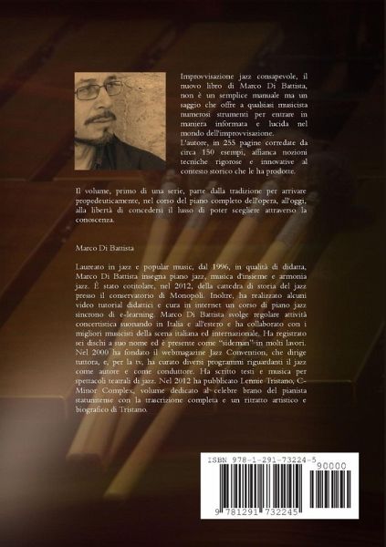Improvvisazione jazz consapevole, il nuovo libro di Marco Di Battista, non è un semplice manuale ma un saggio che offre a qualsiasi musicista numerosi strumenti per entrare in maniera informata e lucida nel mondo dell'improvvisazione. L'autore, in 255 pagine corredate da circa 150 esempi, affianca nozioni tecniche rigorose e innovative al contesto storico che le ha prodotte. Il volume, primo di una serie, parte dalla tradizione per arrivare propedeuticamente, nel corso del piano completo dell'opera, all'oggi, alla libertà di concedersi il lusso di poter scegliere attraverso la conoscenza.