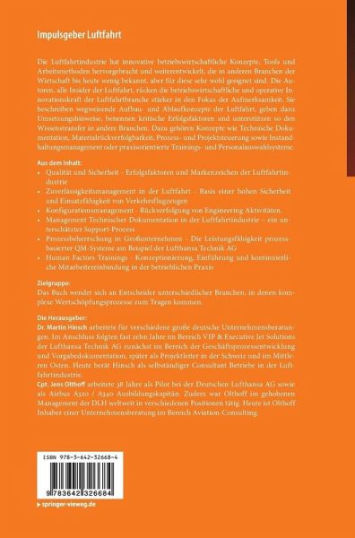 Die Autoren, alle Insider der Luftfahrt, rücken die betriebswirtschaftliche und operative Innovationskraft der Luftfahrtbranche stärker in den Fokus der Aufmerksamkeit. Sie beschreiben wegweisende Aufbau- und Ablaufkonzepte der Luftfahrt, geben dazu Umsetzungshinweise, benennen kritische Erfolgsfaktoren und unterstützen so den Wissenstransfer in andere Branchen.