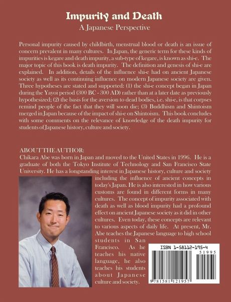 Personal impurity caused by childbirth, menstrual blood or death is an issue of concern prevalent in many cultures. In Japan, the generic term for these kinds of impurities is kegare and death impurity, a sub-type of kegare, is known as shi-e. The major topic of this book is death impurity. The definition and genesis of shi-e are explained. In addition, details of the influence shi-e had on ancient Japanese society as well as its continuing influence on modern Japanese society are given. Three hypotheses are stated and supported: (1) the shi-e concept began in Japan during the Yayoi period (300 BC - 300 AD) rather than at a later date as previously hypothesized; (2) the basis for the aversion to dead bodies, i.e. shi-e, is that corpses remind people of the fact that they will soon die; (3) Buddhism and Shintoism merged in Japan because of the impact of shi-e on Shintoism. This book concludes with some comments on the relevance of knowledge of the death impurity for students of Japanese history, culture and society.