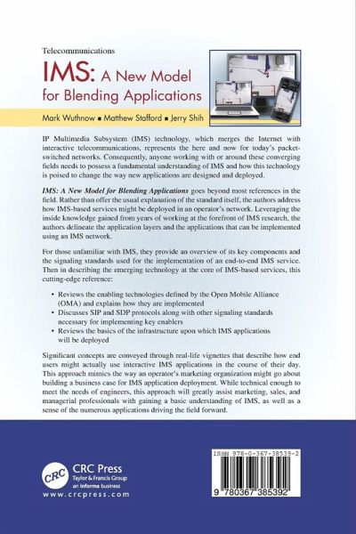 More than just an explanation of IMS, this book addresses how IMS-based services could be deployed in an operator's network. The authors delineate the application layer and the types of applications that can be implemented with an IMS network. They begin with an overview the components that make up IMS, then provide a brief tutorial on several of the key signaling standards that have been defined for implementation of an end-to-end service making use of the IMS. The book covers enabling technologies and how one can take the enablers defined by OMA, place them in an IMS network defined by 3GPP, add creativity and offer new services to the consumer or enterprise customer. It includes vignettes that describe real-life scenarios.