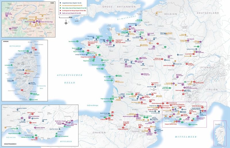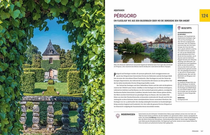 Die Struktur ist klug gewählt: Frankreich wird in fünf große Themenbereiche gegliedert, die nicht einfach nach Regionen, sondern nach Erlebniswelten sortiert sind – eine Herangehensweise, die überrascht und begeistert.