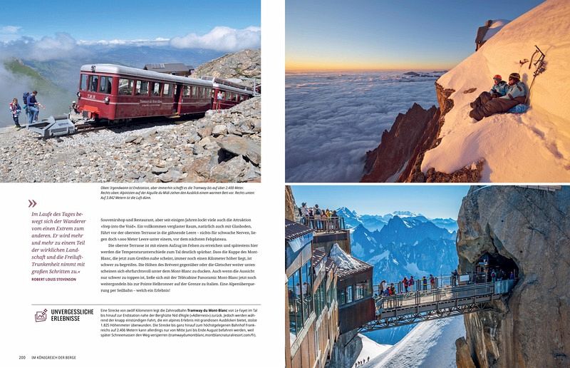 Nicht nur Alpengipfel locken – auch Korsika, die Pyrenäen, das Zentralmassiv und selbst die Bretagne haben Höhenzüge, die ihre Reize entfalten. Was besonders gefällt: Das Buch bietet nicht nur anspruchsvolle Routen für Wanderer, sondern auch Erlebnisse für Genießer, die mit Zahnradbahnen oder Seilbahnen aussichtsreiche Höhen erklimmen wollen.