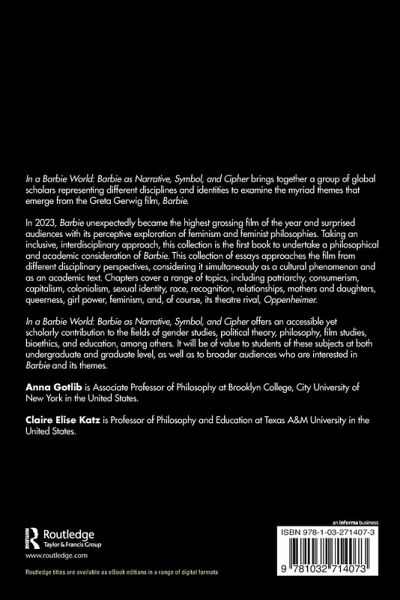 In a BarbieWorld: Barbie as Narrative, Symbol, and Cipher offers an accessible yet scholarly contribution to the fields of gender studies, political theory, philosophy, film studies, bioethics, and education, among others. It will be of value to students of these subjects at both undergraduate and graduate level, as well as to broader audiences who are interested in Barbie and its themes.