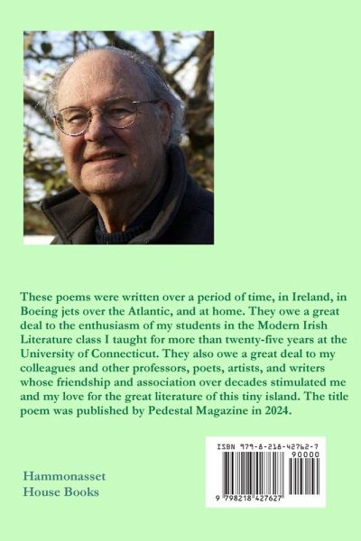 These poems were written over a period of time, in Ireland, in Boeing jets over the Atlantic, and at home. They owe a great deal to the enthusiasm of my students in the Modern Irish Literature class I taught for more than twenty-five years at the University of Connecticut. They also owe a great deal to my colleagues and other professors, poets, artists, and writers whose friendship and association over decades stimulated me and my love for the great literature of this tiny island.