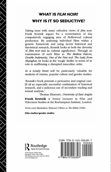 Taking issue with many orthodox views of Film Noir, Frank Krutnik argues for a reorientation of this compulsively engaging area of Hollywood cultural production. Krutnik recasts the films within a generic framework and draws on recent historical and theoretical research to examine both the diversity of film noir and its significance within American popular culture of the 1940s. He considers classical Hollywood cinema, debates on genre, and the history of the emergence of character in film noir, focusing on the hard-boiled' crime fiction of Dashiell Hammett, Raymond Chandler and James M. Cain as well as the popularisationof Freudian psychoanalysis; and the social and cultural upheavals of the 1940s.