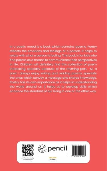 In a poetic mood is a book which contains poems. Poetry reflects the emotions and feelings of a person. It helps to relate with what a person is feeling. This book is for kids who find poems as a means to communicate their perspectives in life. Children will definitely find this collection of poem interesting specially because of the rhyming part. As a poet I always enjoy writing and reading poems, specially the ones which convey a message and shares knowledge. Poetry has its own importance as it helps in understanding the world around us. It helps us to develop skills which enhance the standard of our living in one or the other way.
