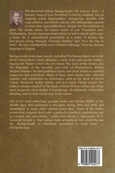 In a Quiet Village is a short story collection by Sabine Baring-Gould. The Reverend Sabine Baring-Gould (28 January 1834 - 2 January 1924) of Lew Trenchard in Devon, England, was an Anglican priest, hagiographer, antiquarian, novelist, folk song collector and eclectic scholar. His bibliography consists of more than 1240 publications, though this list continues to grow. His family home, the manor house of Lew Trenchard, near Okehampton, Devon, has been preserved as he had it rebuilt and is now a hotel. He is remembered particularly as a writer of hymns, the best-known being "Onward, Christian Soldiers" and "Now the Day Is Over". He also translated the carol "Gabriel's Message" from the Basque language to English. Baring-Gould wrote many novels, including The Broom-Squire set in the Devil's Punch Bowl (1896), Mehalah: a story of the salt marshes (1880), Guavas the Tinner (1897), the 16-volume The Lives of the Saints, and the biography of the eccentric poet-vicar of Morwenstow, Robert Stephen Hawker. He also published nearly 200 short stories in assorted magazines and periodicals. Many of these short stories were collected together and republished as anthologies, such as his Book of Ghosts (1904), Dartmoor Idyllys (1896), and In a Quiet Village (1900). His folkloric studies resulted in The Book of Were-Wolves (1865), one of the most frequently cited studies of lycanthropy. He habitually wrote while standing, and his desk can be seen in the manor. One of his most enduringly popular works was Curious Myths of the Middle Ages, first published in two parts during 1866 and 1868, and republished in many other editions since then. "Each of the book's twenty-four chapters deals with a particular medieval superstition and its variants and antecedents," writes critic Steven J. Mariconda. H. P. Lovecraft termed it "that curious body of medieval lore which the late Mr. Baring-Gould so effectively assembled in book form." ... (wikipedia.org)