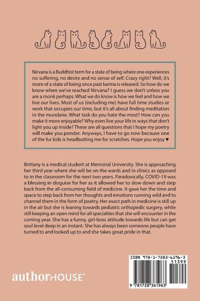 Nirvana is a Buddhist term for a state of being where one experiences no suffering, no desire and no sense of self. Crazy right? Well, it's more of a state of being once past karma is released. So how do we know when we've reached Nirvana? I guess we don't unless you are a monk perhaps. What we do know is how we feel and how we live our lives. Most of us (including me) have full time studies or work that occupies our time, but it's all about finding meditation in the mundane. What task do you hate the most? How can you make it more enjoyable? Why even live your life in ways that don't light you up inside? These are all questions that I hope my poetry will make you ponder. Anyways, I have to go now because one of the fur kids is headbutting me for scratches. Hope you enjoy