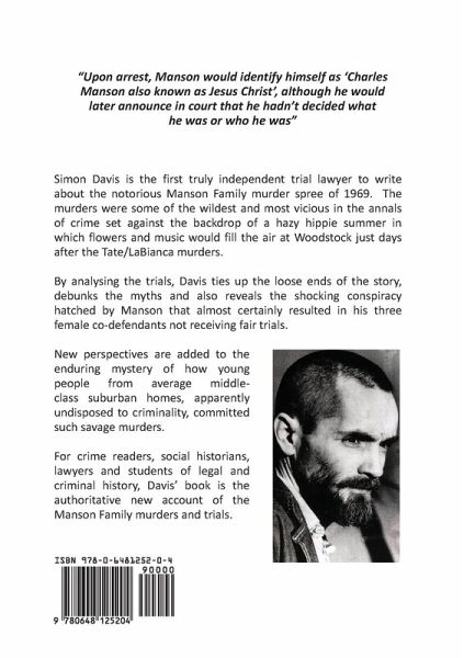 Simon Davis is the first truly independent trial lawyer to write about the notorious Manson Family murder spree of 1969. The murders were some of the wildest and most vicious in the annals of crime set against the backdrop of a hazy hippie summer in which flowers and music would fill the air at Woodstock just days after the Tate/LaBianca murders. By analysing the trials, Davis ties up the loose ends of the story, debunks the myths and also reveals the shocking conspiracy hatched by Manson that almost certainly resulted in his three female co-defendants not receiving fair trials. New perspectives are added to the enduring mystery of how young people from average middle-class suburban homes, apparently undisposed to criminality, committed such savage murders. For crime readers, social historians, lawyers and students of legal and criminal history, Davis' book is the authoritative new account of the Manson Family murders and trials.