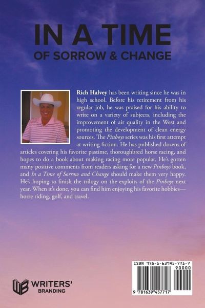 Rich Halvey has been writing since he was in high school. Before his retirement from his regular job, he was praised for his ability to write on a variety of subjects, including the improvement of air quality in the West and promoting the development of clean energy sources. The Pinboys series was his first attempt at writing fiction. He has published dozens of articles covering his favorite pastime, thoroughbred horse racing, and hopes to do a book about making racing more popular. He's gotten many positive comments from readers asking for a new Pinboys book, and In a Time of Sorrow and Change should make them very happy. He's hoping to finish the trilogy on the exploits of the Pinboys next year. When it's done, you can find him enjoying his favorite hobbies-horse riding, golf, and travel.