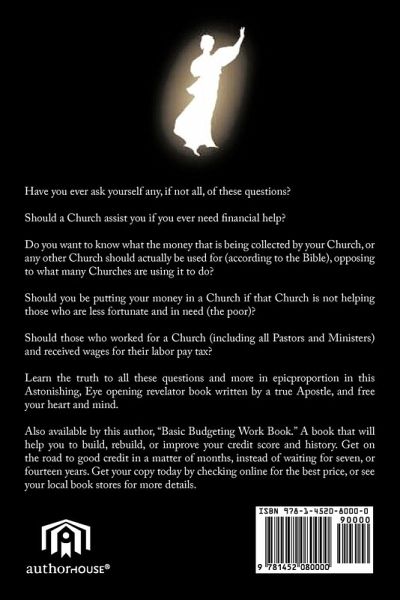 This book was written to address some sensitive questions, and to provide the answers that are earnestly needed in these days. Questions such as, Should a church assist you if you ever need financial help? Do you want to know what the money that is being collected by your church, or any other church should actually be used for (according to the Bible), opposing to what many churches are using it to do? Should you be putting your money in a church if that church is not helping those who are less fortunate and in need (poor)? Should those who worked for a Church (including all pastors and ministers) and received wage for their labor pay tax? Learn the truth to all these questions and more in epic proportion in this Astonishing, Eye opening revelator book written by a true Apostle, and free your heart and mind.
