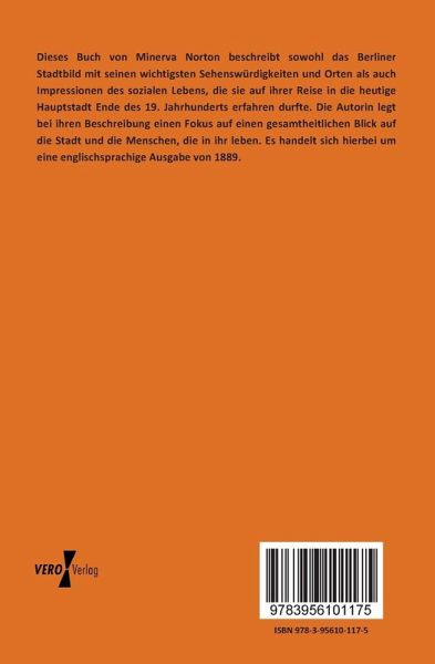 Dieses Buch von Minerva Norton beschreibt sowohl das Berliner Stadtbild mit seinen wichtigsten Sehenswürdigkeiten und Orten als auch Impressionen des sozialen Lebens, die sie auf ihrer Reise in die heutige Hauptstadt Ende des 19. Jahrhunderts erfahren durfte. Die Autorin legt bei ihren Beschreibung einen Fokus auf einen gesamtheitlichen Blick auf die Stadt und die Menschen, die in ihr leben. Es handelt sich hierbei um eine englischsprachige Ausgabe von 1889.
