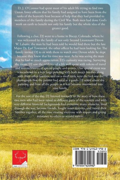 D. J. O'Connor had spent most of his adult life trying to find two Union Army officers that his family had assigned to have been from the ranks of the heavenly host because of help that they had provided to members of the family during the Civil War. Both men had done God's work on earth to benefit not only his family but the whole idea of the greater good. Following a clue, DJ went to a home in Biscay, Colorado, where he was welcomed by the family of not only Second Lieutenant Devon W. Labatte, the man he had been told he would find there but the late Major Dr. Earl Townsend, the other officer he had been looking for. The family invited DJ to sit with them to watch over Devon while he slept because they knew that his time was near. As he was seeing the man that he had so much appreciation, DJ's curiosity was racing. Surveying the room, DJ saw the evidence of a life well spent with tokens of travel and remembrances of special people and events. One special event was remembered in a very large painting with both men's families along with three other families, and on a small table near the bed was the photograph that the painter had used as a guide. DJ asked about the painting and how all the people in it had become intertwined into one family. For the rest of the day, DJ listened intensely to the story of how these two men who had been raised in different parts of the country and with very different financial backgrounds had overcome many obstacles, lived through the war, become friends, fought inner demons, and raised their families together, all the time treating everyone with respect and giving assistance to others as second nature.