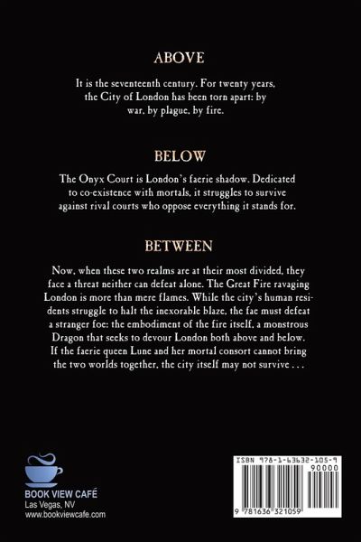 ABOVE It is the seventeenth century. For twenty years, the City of London has been torn apart: by war, by plague, by fire. BELOW The Onyx Court is London's faerie shadow. Dedicated to co-existence with mortals, it struggles to survive against rival courts who oppose everything it stands for. BETWEEN Now, when these two realms are at their most divided, they face a threat neither can defeat alone. The Great Fire ravaging London is more than mere flames. While the city's human residents struggle to halt the inexorable blaze, the fae must defeat a stranger foe: the embodiment of the fire itself, a monstrous Dragon that seeks to devour London both above and below. If the faerie queen Lune and her mortal consort cannot bring the two worlds together, the city itself may not survive . . .